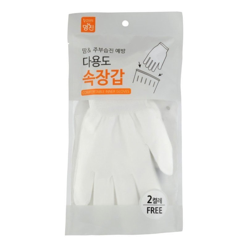 MyungJin "Mj New Inner Gloves" Универсальные перчатки - вкладыши хозяйственные, цвет белый, 19смх17см, 2 пары в упаковке.