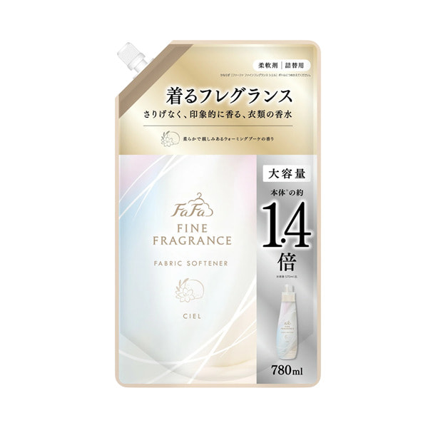 Nissan "FaFa Fine Fragrance Ciel" Парфюмированный кондиционер для белья, с ароматом лимона, сирени и фрезии, сменная упаковка, 780 мл.