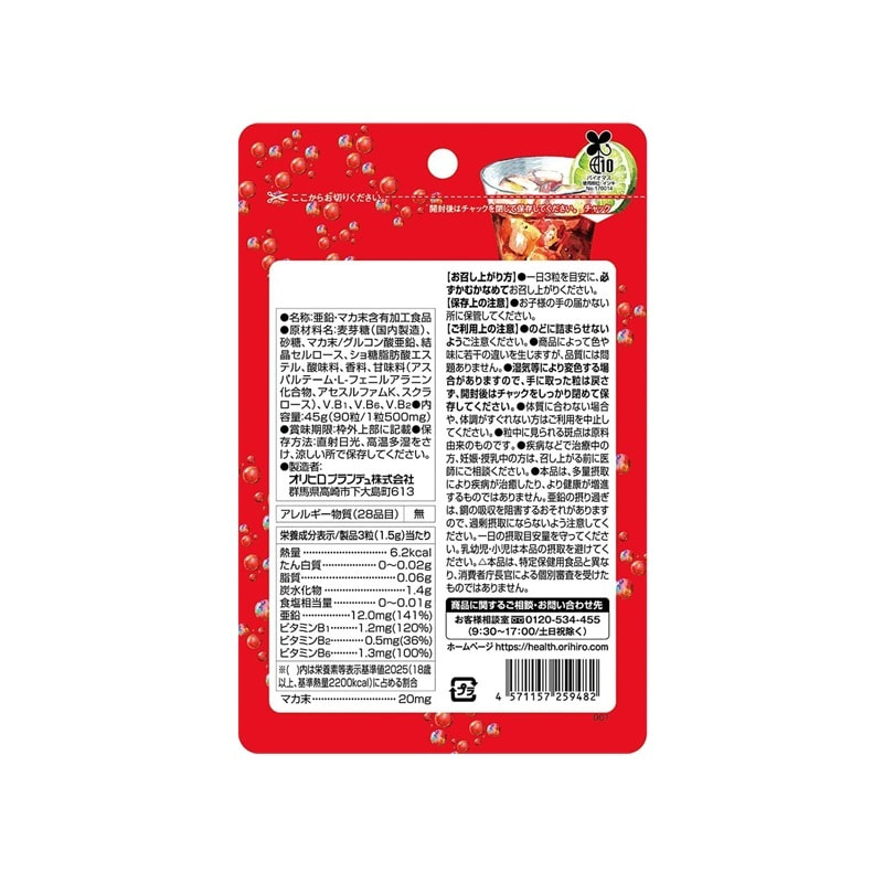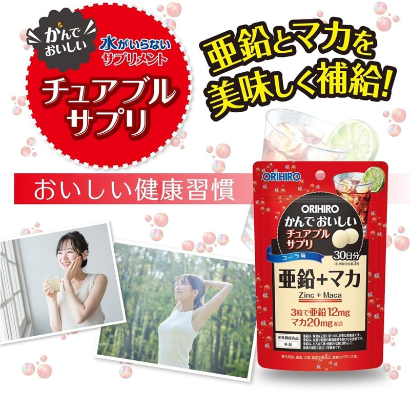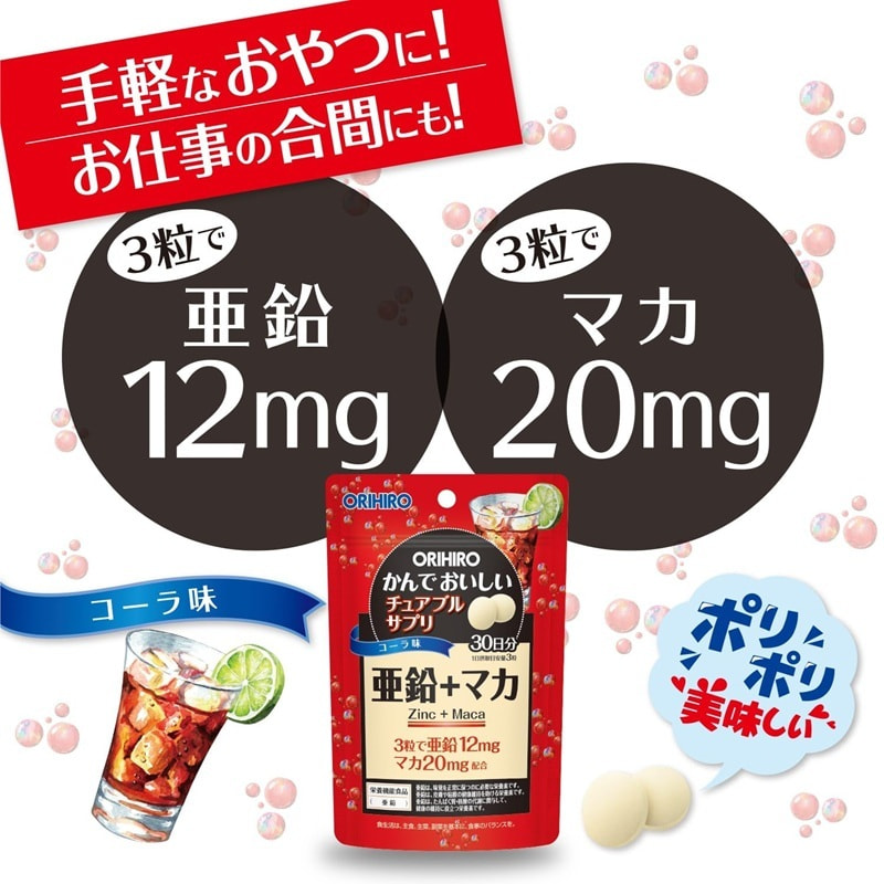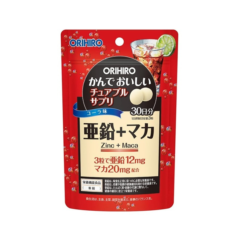 Orihiro Жевательные витамины с цинком и макой, со вкусом колы, 90 таблеток на 30 дней.