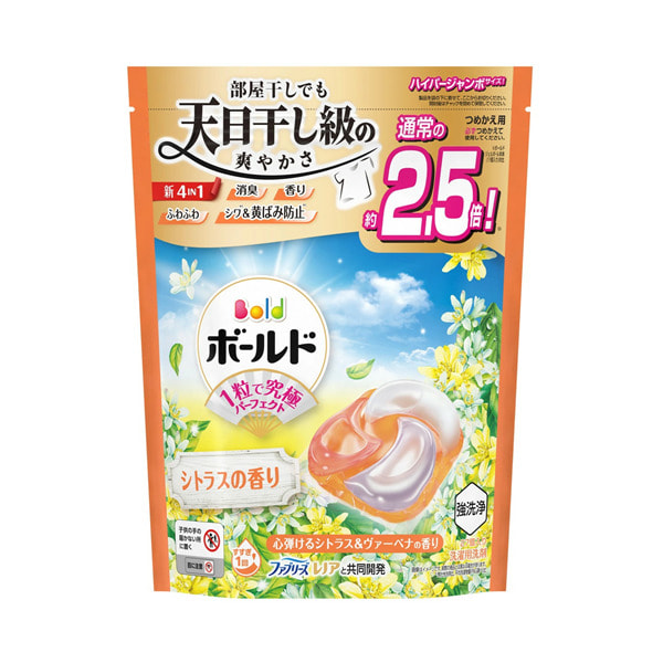 Procter&Gamble "Bold Gel Ball Citrus&Verbena" Капсулы для стирки белья 4 в 1 с кондиционером, аромат цитрусовых и вербены, сменная упаковка, 27 шт.