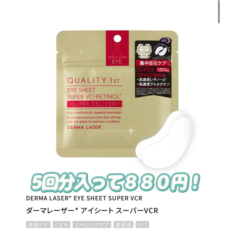 Quality First "Derma Laser Eye Sheet Super VCR" Антивозрастные патчи для кожи вокруг глаз, уход в ночное время, 10 шт.
