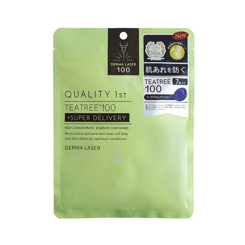 Quality First "Derma Laser Super TEATREE100" Успокаивающая тканевая маска для лица с маслом листьев чайного дерева, 7 шт.