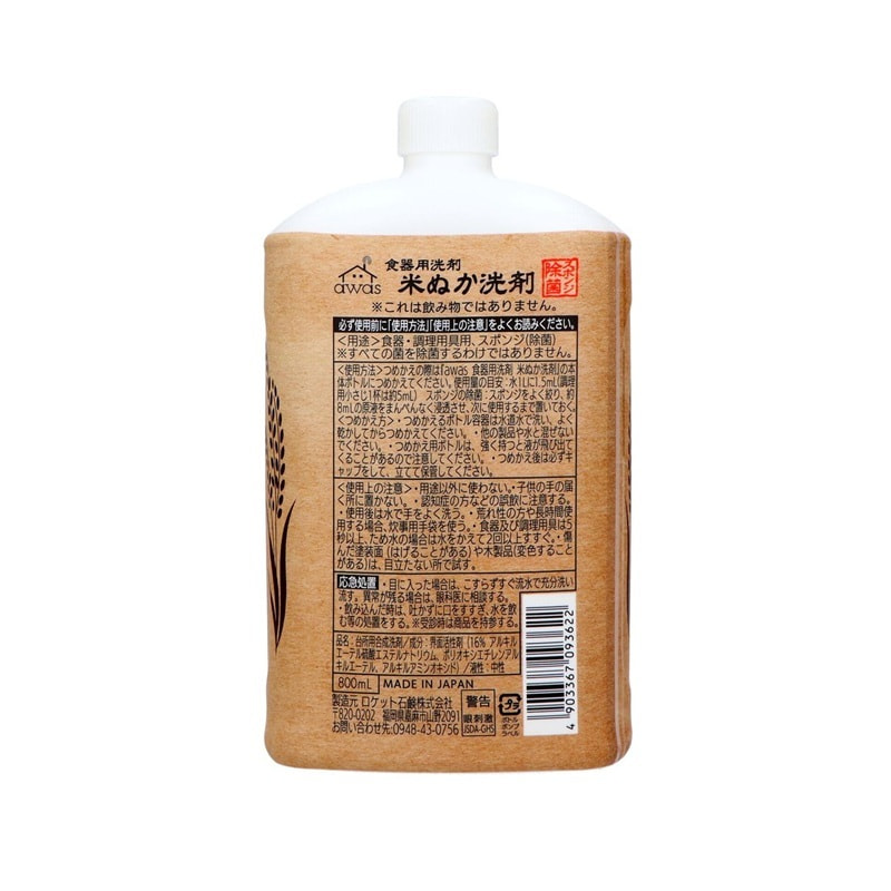 Rocket Soap "Awa’s" Жидкость для мытья посуды с экстрактом рисовых отрубей, сменная упаковка, 800 мл.