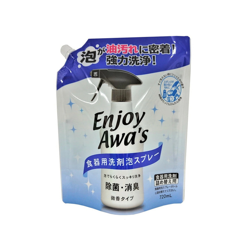 Rocket Soap "Enjoy Awa’s" Спрей-пена для мытья посуды с антибактериальным и дезодорирующим эффектом, с ароматом цитрусовых, сменная упаковка, 720 мл.