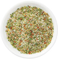 Состав: соль (каменная соль (США)), белый перец, сахар, молотый кунжут, томатный порошок, петрушка, жареный лук, чеснок, эстрагон, шнитт-лук (содержит кунжут).
