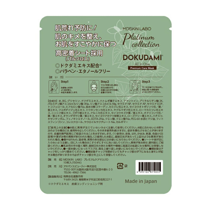 Премиальные тканевые маски "MDSKIN LABO Dokudami Premium Care" комплексный экспресс-уход "все в одном".
