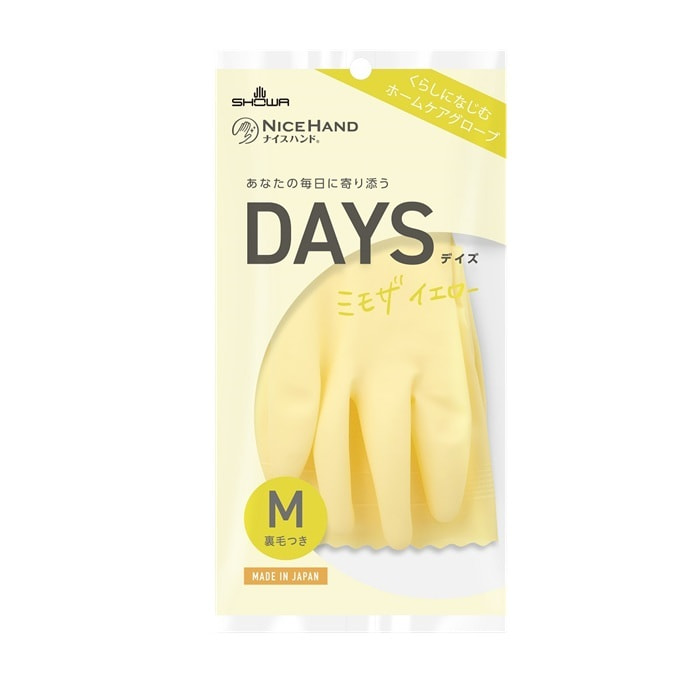Showa Gloves "Nice Hand Days" Хозяйственные перчатки с флисовой подкладкой и усиленными кончиками пальцев, цвет желтая мимоза, размер M, 1 пара.