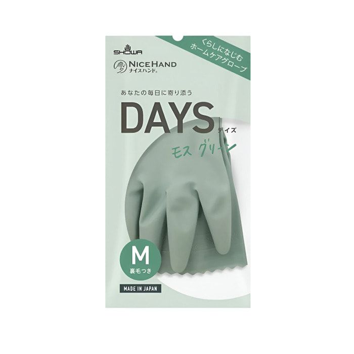 Showa Gloves "Nice Hand Days" Хозяйственные перчатки с флисовой подкладкой и усиленными кончиками пальцев, цвет зеленый мох, размер M, 1 пара.