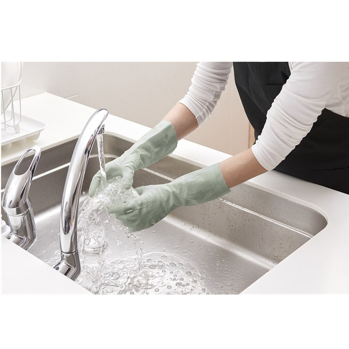 Showa Gloves "Nice Hand Days" Хозяйственные перчатки с флисовой подкладкой и усиленными кончиками пальцев, цвет зеленый мох, размер L, 1 пара.