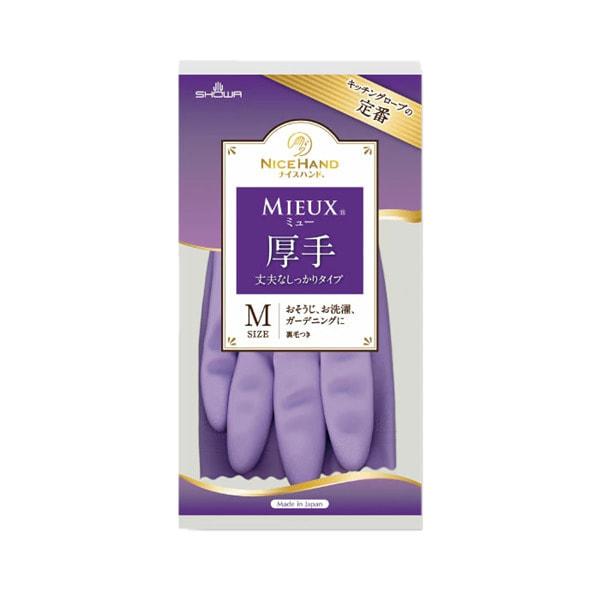 Showa Gloves "Nice Hand Mieux" Хозяйственные перчатки утолщенные, с флисовой подкладкой, фиолетовые, размер M, 1 пара.