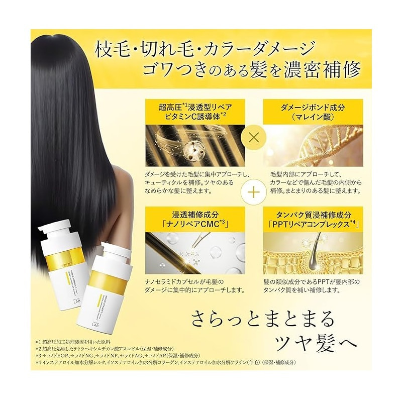 Технология сверхвысокого давления усиливает проникновение активных компонентов в сердцевину волоса, обеспечивая целенаправленное восстановление.