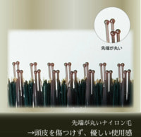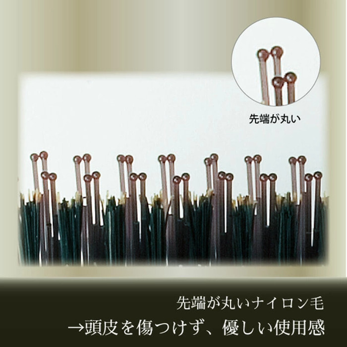 "Щетинки" из натуральной свиной щетины чередуются с "щетинками" из нейлона, закругленные основания которых не травмируют кожу головы, не повреждают корни волос, предотвращая их выпадение.